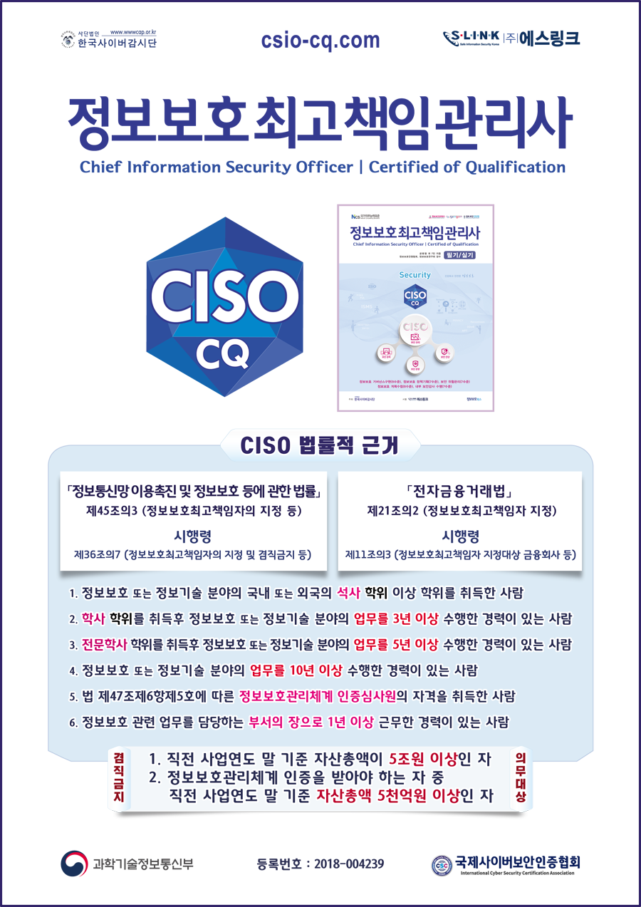 ISMS-P심사원, PIA, CISO 등 관련 유관 자격증