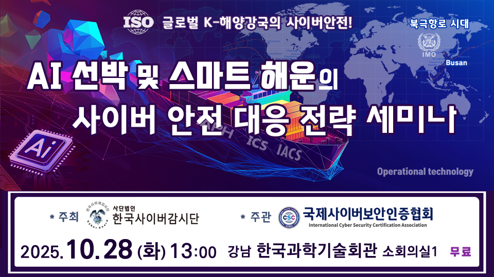 ![]() ºÏ±ØÇ×·Î ½Ã´ë, ±Û·Î¹ú K-ÇØ¾ç°±¹ÀÇ »çÀ̹ö¾ÈÀü! ¡Û Çà»ç¸í : AI ¼±¹Ú ¹× ½º¸¶Æ® ÇØ¿îÀÇ »çÀ̹ö ¾ÈÀü ´ëÀÀ Àü·« ¼¼¹Ì³ª ¡Û ÁÖÃÖ : (»ç)Çѱ¹»çÀ̹ö°¨½Ã´Ü ¡Û ÁÖ°ü : ±¹Á¦»çÀ̹öº¸¾ÈÀÎÁõÇùȸ ¡Û ÈÄ¿ø : (»ç)Çѱ¹ÀÎÅͳÝÁ¤º¸ÇÐȸ, »çÀ̹öº¸¾È¿¬±¸È¸, Áö´ÉÁ¤º¸º¸¾È¾ÆÄ«µ¥¹Ì, µ¥Àϸ®½ÃÅ¥ ¡Û ÀϽà : 2025. 10. 28 (È) ¿ÀÈÄ 1½Ã~5½Ã ¡Û Àå¼Ò : ¼¿ï½Ã °³² Çѱ¹°úÇбâ¼úȸ°ü ¼ÒȸÀǽÇ1 (ÁöÇÏ 1Ãþ) ¡Û ´ë»ó : ¼±¹Ú°ü¸®Àü¹®°¡ ¹× ÇØ¿î, Á¶¼±, Ç׸¸ °ü·Ã ´ã´çÀÚ ¡Û µî·Ïºñ : ¹«·á (±³À° À̼öÁõ 4½Ã°£) ¡Û ÇùÂù : ISOÁ¤º¸º¸È£¿¬±¸È¸, ¿ÍÀ̽ÃÅ¥¸®Æ¼, À̱۷çÄÚÆÛ·¹À̼Ç, ¾¾Æ¼¾ÆÀÌ·¦, Á¤º¸º¸È£ºÏ½º, ¼Öµ¥½ºÅ©Çпø, ºñÆ®¼¾½Ì ¡Û ¼¼´Ï¸¶ ÇÁ·Î±×·¥ - 12:30~13:20 : ¼¼¹Ì³ª µî·Ï - 13:20~13:30 : Àλ縻, ¼Ò°³ - 13:30~14:20 : ¹ßÇ¥1. AI ½º¸¶Æ® ¼±¹ÚÀÇ °³¿ä¿Í ±¹Á¦±â±¸ ¹× ISO 23806 ÀÎÁõ ¿ä±¸»çÇ× (Çѱ¹»çÀ̹ö°¨½Ã´Ü °øº´Ã¶ ÀÌ»çÀå) - 14:20~14:30 : ÈÞ½Ä - 14:30~15:20 : ¹ßÇ¥2. ÇØ¾ç ½º¸¶Æ® ¼±¹ÚÀÇ Àڻ꺰 Ãë¾àÁ¡ ºÐ¼® ¹× Zero Trust º¸¾È°ü¸® ¹æ¾È (±¹Á¦»çÀ̹öº¸¾ÈÀÎÁõÇùȸ ¿©µ¿±Õ ÀÌ»ç) - 15:20~15:30 : ÈÞ½Ä - 15:30~16:20 : ¹ßÇ¥3. AI ¼±¹Ú³» ¾ÈÀü°ü¸®½Ã½ºÅÛ(SMS)ÀÇ »çÀ̹öº¸¾È ±¸Ãà ¹× ¿î¿µ ¹æ¾È (±¹Á¦»çÀ̹öº¸¾ÈÀÎÁõÇùȸ ÀÌÁØÈ ÀÌ»ç) - 16:20~16:40 : ÈÞ½Ä - 16:40~17:10 : Á¾ÇÕÅä·Ð ¹× ÁúÀÇÀÀ´ä AI ¼±¹Ú »çÀ̹ö º¹¿ø·Â ¼ö¸³ ¹× ¾ÈÀü°ü¸®Ã¼°è ±¸Ãà Àü·« - 17:10~17:20 : ±â³äǰ Ãß÷ ¡Û Çà»ç ȨÆäÀÌÁö http://www.ica22.org/seminar/202510/index.htm ¡Û »çÀü Á¢¼ö https://forms.gle/uS9mr968H4Lxm3Wx8 ------------ ¡à ±¹Á¦»çÀ̹öº¸¾ÈÀÎÁõÇùȸ(CSC)´Â ¼±¹Ú°ü¸®Àü¹®°¡ ¹× ÇØ¿î, Á¶¼±, Ç׸¸ °ü·Ã °ø°ø, ±ÝÀ¶, ±â¾÷ ICT ½Ç¹« ´ã´çÀÚµé°ú Á¤º¸º¸È£ ¹× »çÀ̹öº¸¾È ÀçÁ÷ÀÚµéÀ» ´ë»óÀ¸·Î 'AI ¼±¹Ú ¹× ½º¸¶Æ® ÇØ¿îÀÇ »çÀ̹ö ¾ÈÀü ´ëÀÀ Àü·« ¼¼¹Ì³ª'¸¦ 10¿ù 28ÀÏ(È) °³ÃÖÇÑ´Ù°í ¹àÇû´Ù. ¢º »ç´Ü¹ýÀÎ Çѱ¹»çÀ̹ö°¨½Ã´Ü¿¡¼ ÁÖÃÖÇÏ°í ±¹Á¦»çÀ̹öº¸¾ÈÀÎÁõÇùȸ°¡ ÁÖ°üÇÏ´Â ¡®AI ¼±¹Ú ¹× ½º¸¶Æ® ÇØ¿îÀÇ »çÀ̹ö ¾ÈÀü ´ëÀÀ Àü·« ¼¼¹Ì³ª¡¯¸¦ ¼¿ï½Ã °³² Çѱ¹°úÇбâ¼úȸ°ü ¼ÒȸÀǽÇ1¿¡¼ 10¿ù 28ÀÏ(È) ¿ÀÈÄ 1½ÃºÎÅÍ °³ÃֵȴÙ. ¢º °¿¬ÀÚ´Â °øº´Ã¶ (»ç)Çѱ¹»çÀ̹ö°¨½Ã´Ü ÀÌ»çÀå, ¿©µ¿±Õ ¿ÍÀ̽ÃÅ¥¸®Æ¼ ´ëÇ¥ÀÌ»ç, ÀÌÁØÈ Á¤º¸º¸È£º¸¾È¿ø ¿¬±¸¼ÒÀå, Á¶È«¿¬ ¾¾Æ¼¾ÆÀÌ·¦ ´ëÇ¥ÀÌ»ç, ¸¶±âÆò µÎ»êµðÁöÅÐÀ̳뺣ÀÌ¼Ç º¸¾È»ç¾÷ºÎ »ç¾÷ºÎÀå µî ÃÑ 5¸íÀÇ CSCÇùȸ ÀÌ»çÁøÀÌ Âü¿©ÇÑ´Ù. ¢º 13:30~14:20¿¡´Â °øº´Ã¶ Çѱ¹»çÀ̹ö°¨½Ã´Ü ÀÌ»çÀåÀÇ ¡®AI ½º¸¶Æ® ¼±¹ÚÀÇ °³¿ä¿Í ±¹Á¦±â±¸ ¹× ISO 23806 ÀÎÁõ ¿ä±¸»çÇס¯À̶ó´Â ÁÖÁ¦·Î °¿¬ÀÌ ÁøÇàµÈ´Ù. ¢º 14:30~15:20¿¡´Â ¿©µ¿±Õ ¿ÍÀ̽ÃÅ¥¸®Æ¼ ´ëÇ¥ÀÌ»çÀÇ ¡®ÇØ¾ç ½º¸¶Æ® ¼±¹ÚÀÇ Àڻ꺰 Ãë¾àÁ¡ ºÐ¼® ¹× Zero Trust º¸¾È°ü¸® ¹æ¾È¡¯À̶ó´Â ÁÖÁ¦·Î °¿¬ÀÌ ÁøÇàµÈ´Ù. ¢º 15:30~16:20¿¡´Â ÀÌÁØÈ Á¤º¸º¸È£º¸¾È¿ø ¿¬±¸¼ÒÀåÀÇ ¡®AI ¼±¹Ú³» ¾ÈÀü°ü¸®½Ã½ºÅÛ(SMS)ÀÇ »çÀ̹öº¸¾È ±¸Ãà ¹× ¿î¿µ ¹æ¾È'À̶ó´Â ÁÖÁ¦·Î °¿¬ÀÌ ÁøÇàµÈ´Ù. ¢º 16:30~17:00¿¡´Â ÁúÀÇÀÀ´ä ½Ã°£À¸·Î 'AI ¼±¹Ú »çÀ̹ö º¹¿ø·Â ¼ö¸³ ¹× ¾ÈÀü°ü¸®Ã¼°è ±¸Ãà Àü·«'À̶ó´Â ÁÖÁ¦·Î Á¾ÇÕÅä·ÐÀÌ ÁøÇàµÇ¸é, Åä·ÐÀÚ·Î À̽ÃÁ¾ ¢ßÀ̱۷çÄÚÆÛ·¹ÀÌ¼Ç Àü¹«¿Í °øÀ¯¹Î ¢ß³Ý¾Øµå ºÎÀåÀÌ Âü¿©ÇÑ´Ù. ¢º ±¹³» Á¶¼±¾÷°è°¡ ¹Ì·¡ »ê¾÷ÀÇ ÇÙ½ÉÀ¸·Î ÁÖ¸ñ¹Þ´Â ÀÚÀ²¿îÇ×¼±¹ÚÀº ±âÁ¸ ¼±¹Ú°ú ´Þ¸® ÀΰøÁö´É(AI), »ç¹°ÀÎÅͳÝ(IoT), ºòµ¥ÀÌÅÍ, ÷´Ü ¼¾¼ µî µðÁöÅÐ Çٽɱâ¼úÀÌ À¶ÇÕµÈ Ã·´Ü ¼±¹ÚÀ¸·Î ±âÁ¸ ¼±¹Úº¸´Ù °íµµÈµÈ ¼ÒÇÁÆ®¿þ¾î, »çÀ̹ö º¸¾È ¿ª·®ÀÌ ¿ä±¸µÇ°í ÀÖ´Ù. ¢º ±¹Á¦¼±±ÞÇùȸ(IACS)´Â ÇØ»ó »çÀ̹ö À§Çè°ü¸® Áöħ(Guidelines on Maritime Cyber Risk Management)¿¡ ±Ù°ÅÇÏ¿© 2024³â 7¿ùºÎÅÍ °ÇÁ¶ °è¾àÀ» ü°áÇÑ ½ÅÁ¶¼±¿¡ ´ëÇÏ¿© »çÀ̹ö º¹¿ø·Â °øÅë±ÔÄ¢À» Àû¿ëÇϰí ÀÖ´Ù. IACS UR E27(Cyber resilience of on-board systems and equipment)Àº ¼±¹Ú Á¦Á¶»ç ¹× ±âÀÚÀç ½Ã½ºÅÛÀÇ ¹«°á¼ºÀÌ Á¦Á¶»ç¿¡ ÀÇÇØ º¸È£µÇ°í °ÈÇϱâ À§ÇÏ¿© ¼±¹ÚÀÇ ¼³°è, °ÇÁ¶, ½Ã¿îÀü ±×¸®°í ¿îÇ×±îÁö ¼±¹ÚÀÇ ¿î¿ëÁֱ⠵¿¾È ¿î¿µ±â¼ú(OT) ¹× Á¤º¸±â¼ú(IT) Àåºñ¸¦ ¾ÈÀüÇÏ°Ô ¼±¹Ú ³×Æ®¿öÅ©¿¡ ÅëÇÕÇÏ´Â °ÍÀ» ¸ñÇ¥·Î ¼³Á¤Çϰí, ¼±»ó½Ã½ºÅÛ ¹× ÀåºñÀÇ »çÀ̹ö º¹¿ø·Â¿¡ ´ëÇÑ ¿ä±¸»çÇ×°ú »ç¿ëÀÚ¿Í ¿Âº¸µå ÄÄÇ»Åͱâ¹Ý½Ã½ºÅÛ(CBS) °£ÀÇ ÀÎÅÍÆäÀ̽º¿Í °ü·ÃµÈ Ãß°¡ ¿ä±¸»çÇ×À» Á¦°øÇÑ´Ù. IACS UR E26(Cyber resilience of ships)Àº ¼±¹Ú ´ë»ó ¹× »çÀ̹ö º¹¿ø·ÂÀ» À§ÇØ Àåºñ ½Äº°, º¸È£, ŽÁö, ´ëÀÀ, º¹±¸ÀÇ 5°¡Áö ÁÖ¿ä Ãø¸é¿¡¼ ¼±¹ÚÀÇ ¿îÇ× ´
