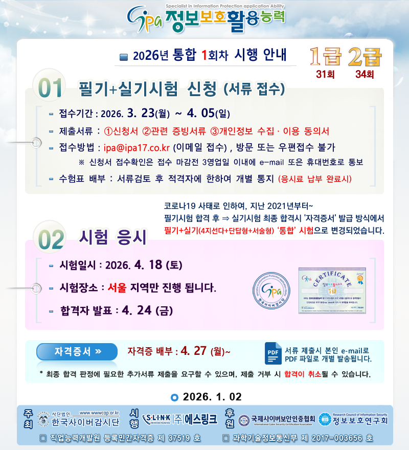 Á¤º¸º¸È£È°¿ë´É·Â < 2±Þ > Á¦ 33ȸ ÀڰݰËÁ¤ ½ÃÇè ½ÃÇà¾È³»