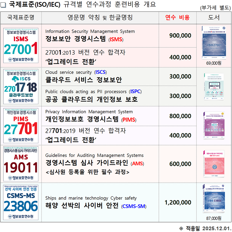 2025³âµµ ISO ±¹Á¦Ç¥ÁØ ±Ô°Ýº° ¿¬¼ö°úÁ¤ ½ÃÇà°èȹ ¾È³»