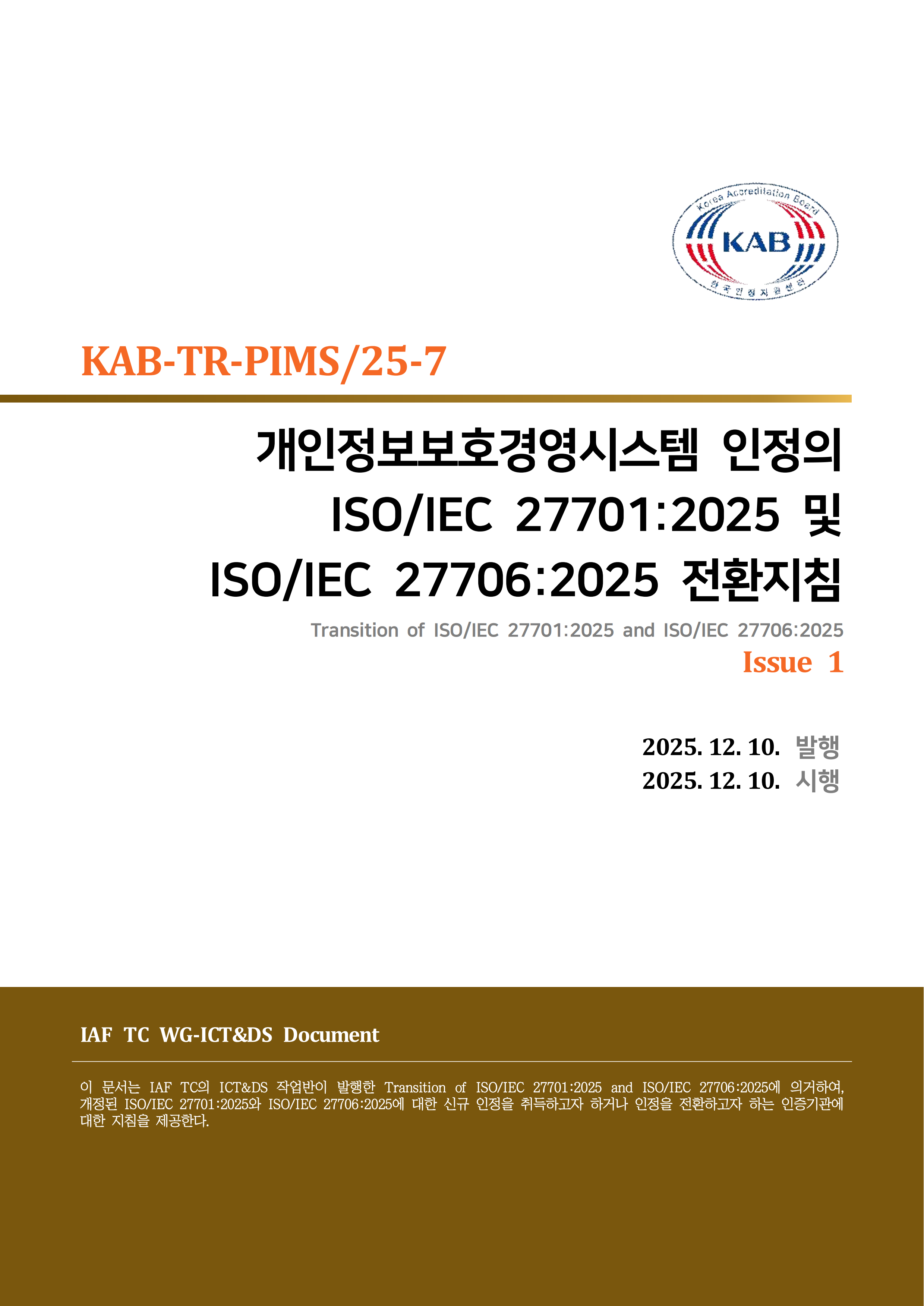 ¤ý÷ºÎ#1 KAB-TR-PIMS_ISO_IEC_27701_¹×_27706_ÀüȯÁöħ_Issue1(2025_1210) (221KB) (Down:0)