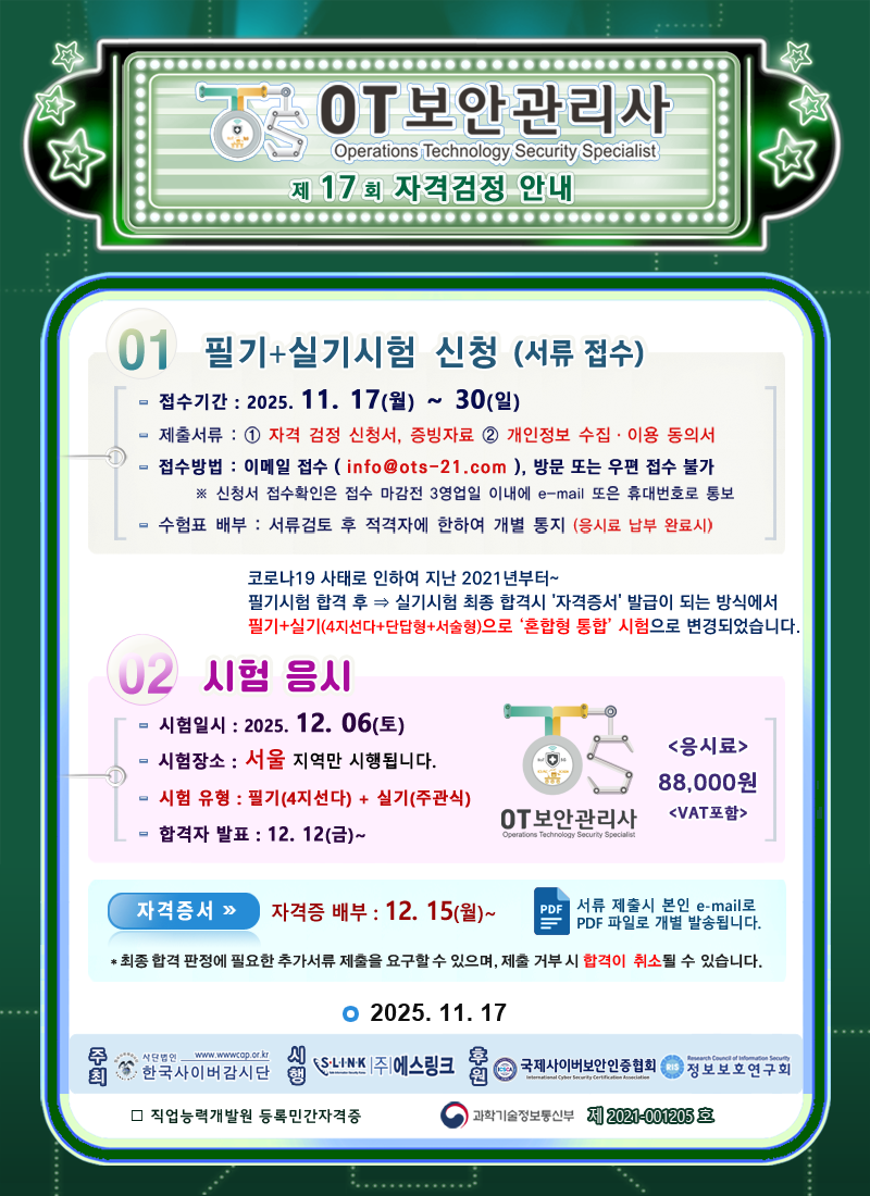 OTº¸¾È°ü¸®»ç(OTS) Á¦ 17ȸ ÀڰݰËÁ¤ ½ÃÇè ½ÃÇà¾È³»
